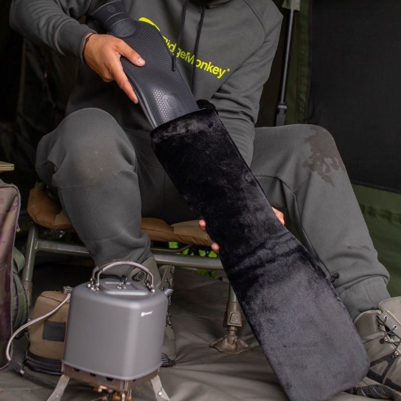 Ridge Monkeys extra large hot water bottle, with a unique tubular profile that allows it to apply heat to a wider area. With the increase in USB powered heating and clothing options hitting the market. The classic water bottle still has a place in modern carp fishing. A great way to give relief to muscle and back pain, as well as keeping you’re sleeping bag toasty. Supplied with a nice brushed fleece jacket.